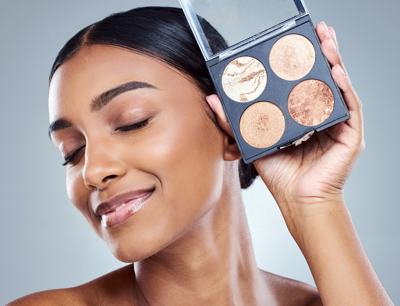 - Dark skin: Choose a highlighter with rich, bronze undertones, such as copper or deep gold shades.